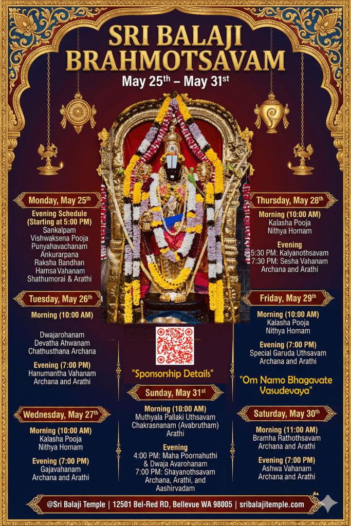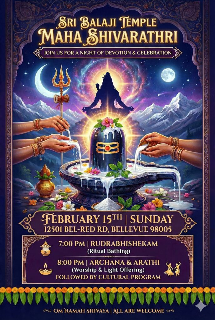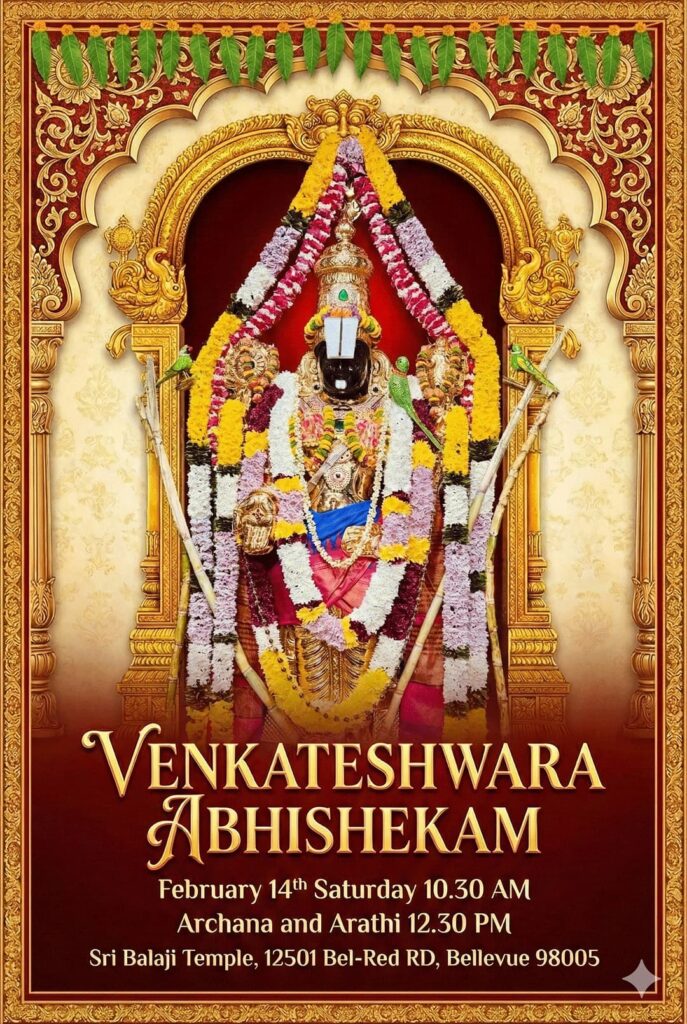 π Location: Sri Balaji Temple 12501 Bel-Red RD, Bellevue 98005