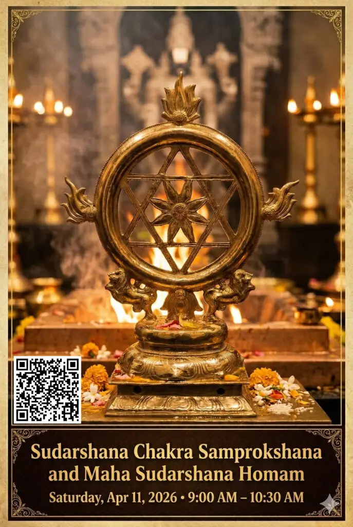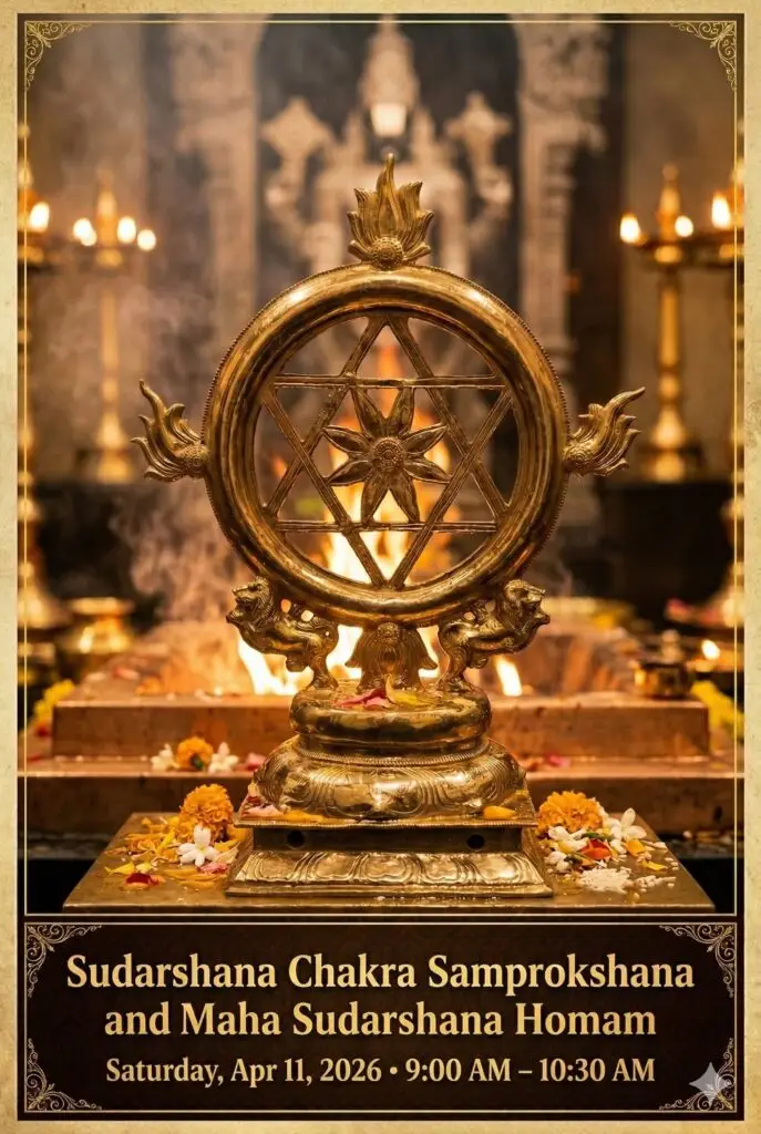 You are warmly invited to attend this sacred Vedic ceremony invoking the divine protection and blessings of Lord Sudarshana.